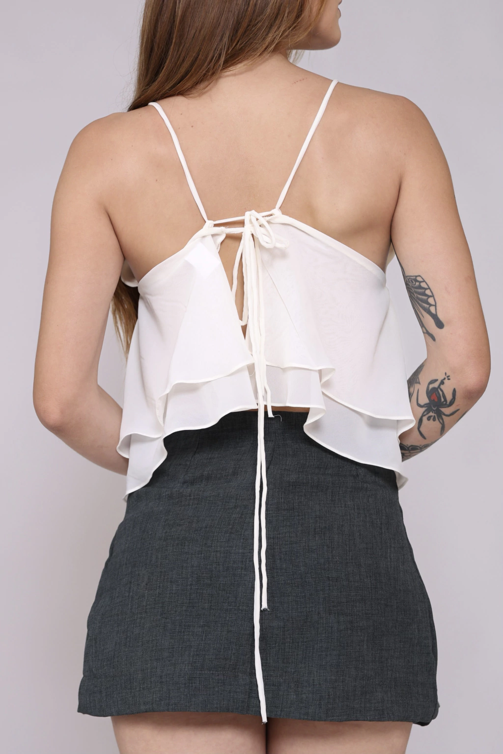 Blusa de alcinha confeccionada em crepe. Possui babado duplo tanto na frente quanto na parte de trás. As alcinhas são reguláveis de acordo com a forma que são amarradas. Busto duplo para não ficar transparente. Não possui bojo. Fabricante: studio belissa
