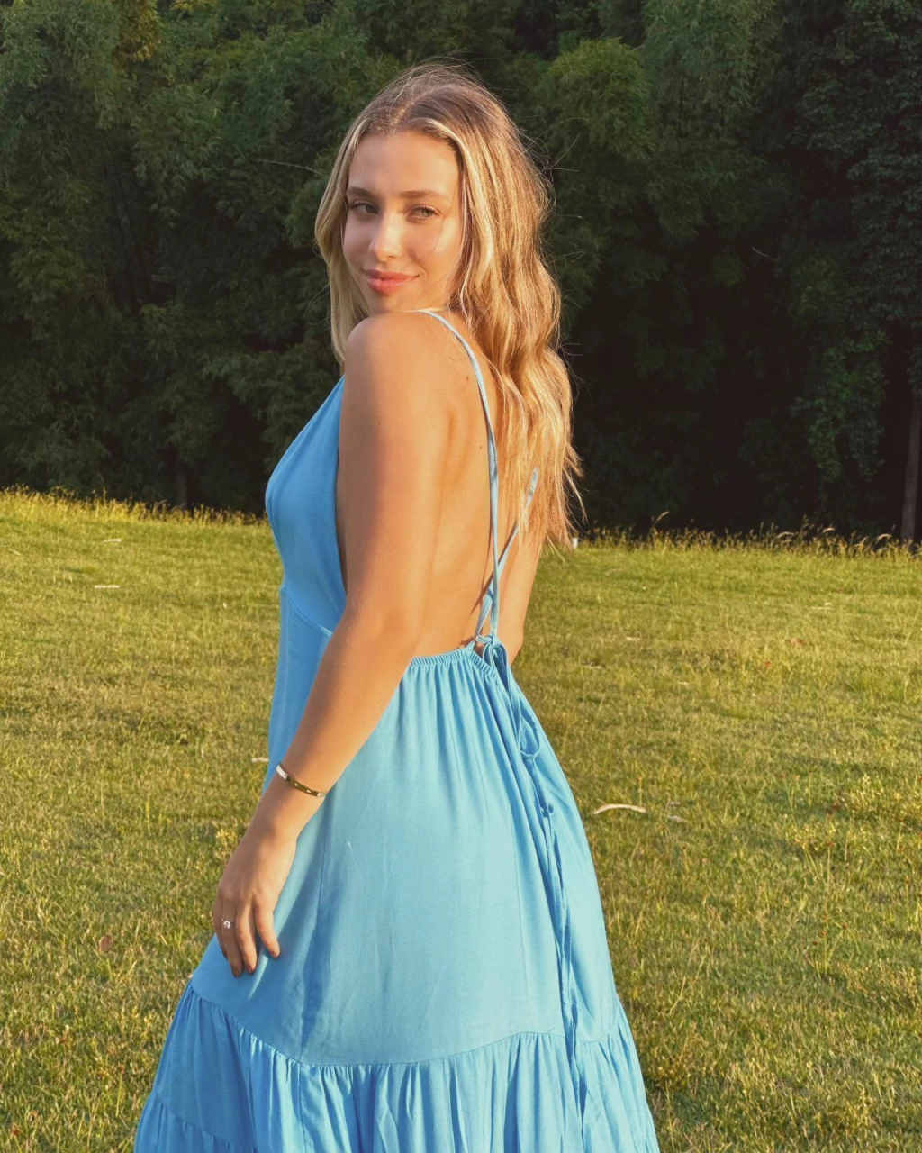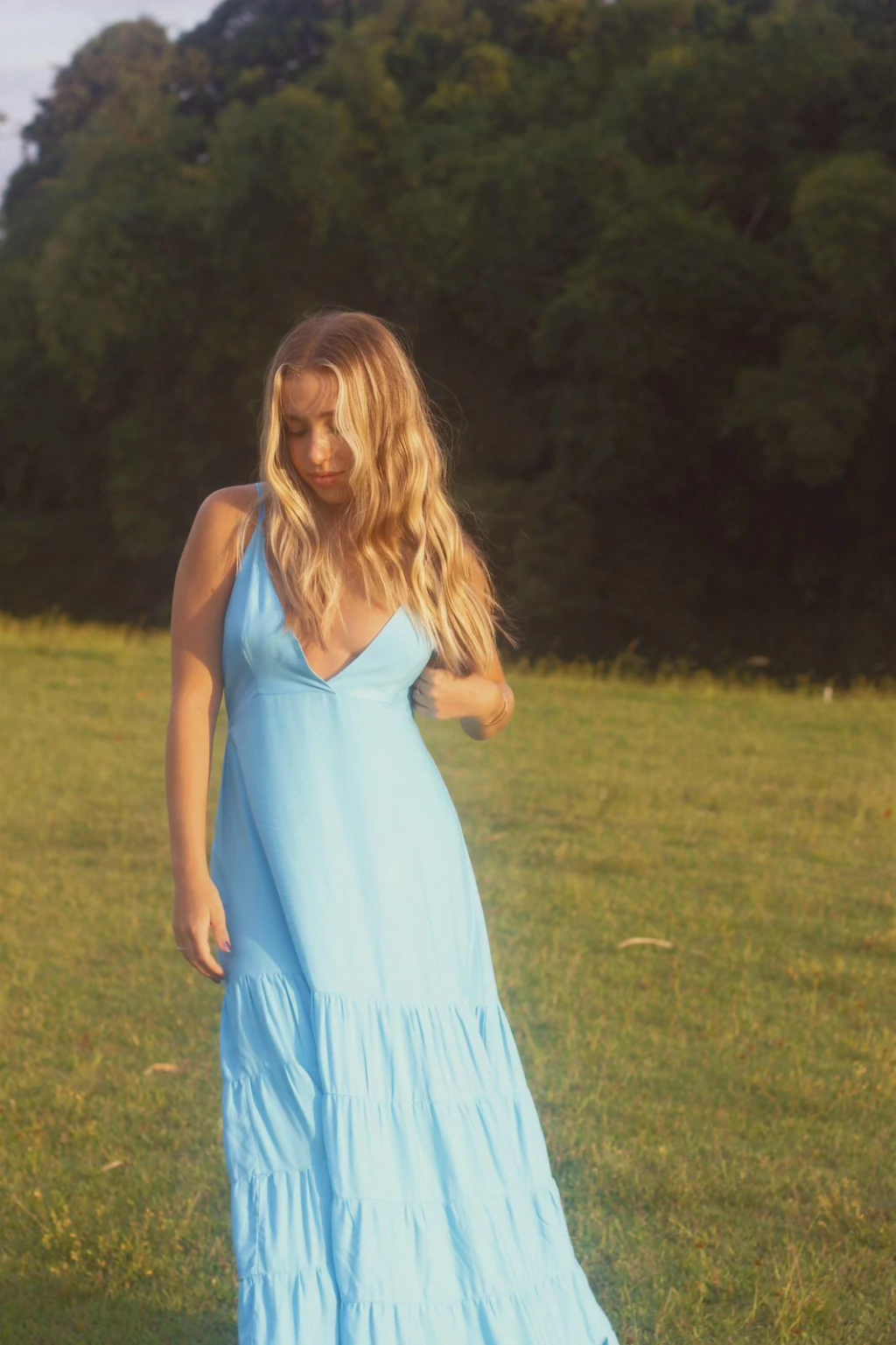 Vestido longo confeccionado em viscose. Possui saia com 5 camadas de babado. As alcinhas são reguláveis de acordo com a forma que são amarradas. Não possui bojo. Fabricante: studio belissa